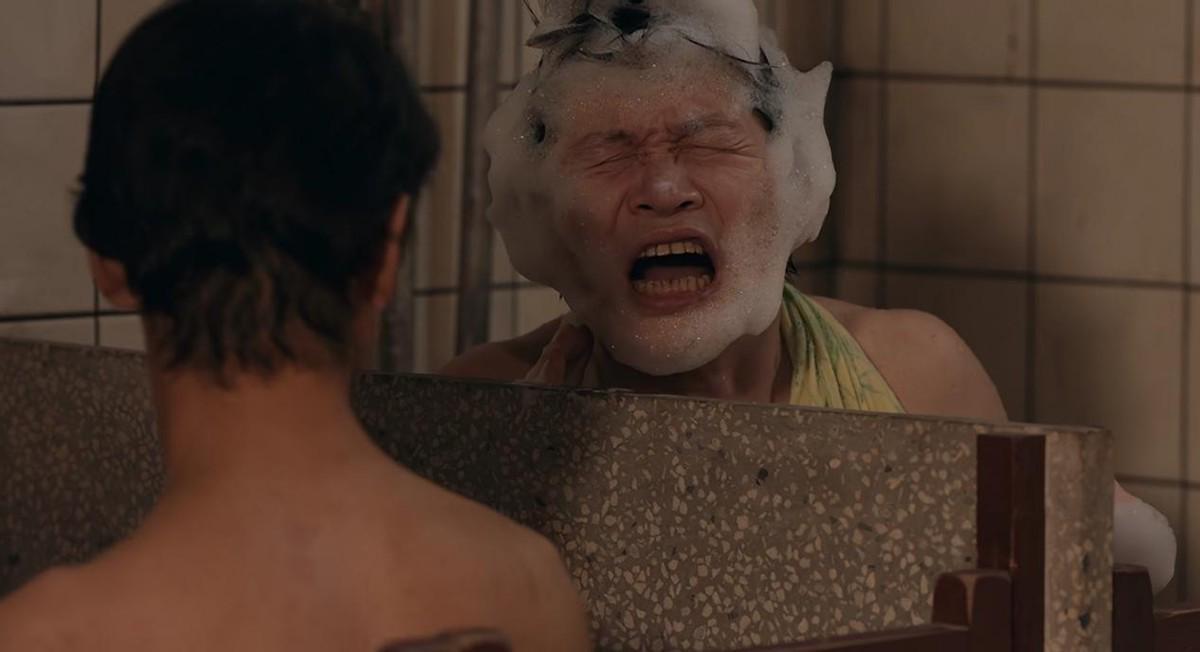 饰演谢春来的陈明昊身上的赘肉不少,坐在澡堂边上往后一仰,肉都堆起来一大块,整个人看着虎背熊腰的。
